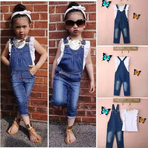 Good Chance for 2019 Summer 2pcs Toddler Girls Kids Outfit Clothes Ruffle Shirt Tops+Jeans Overalls Clothes Set for