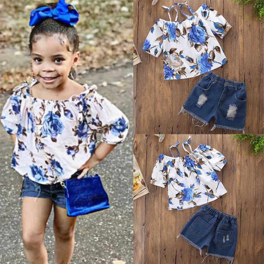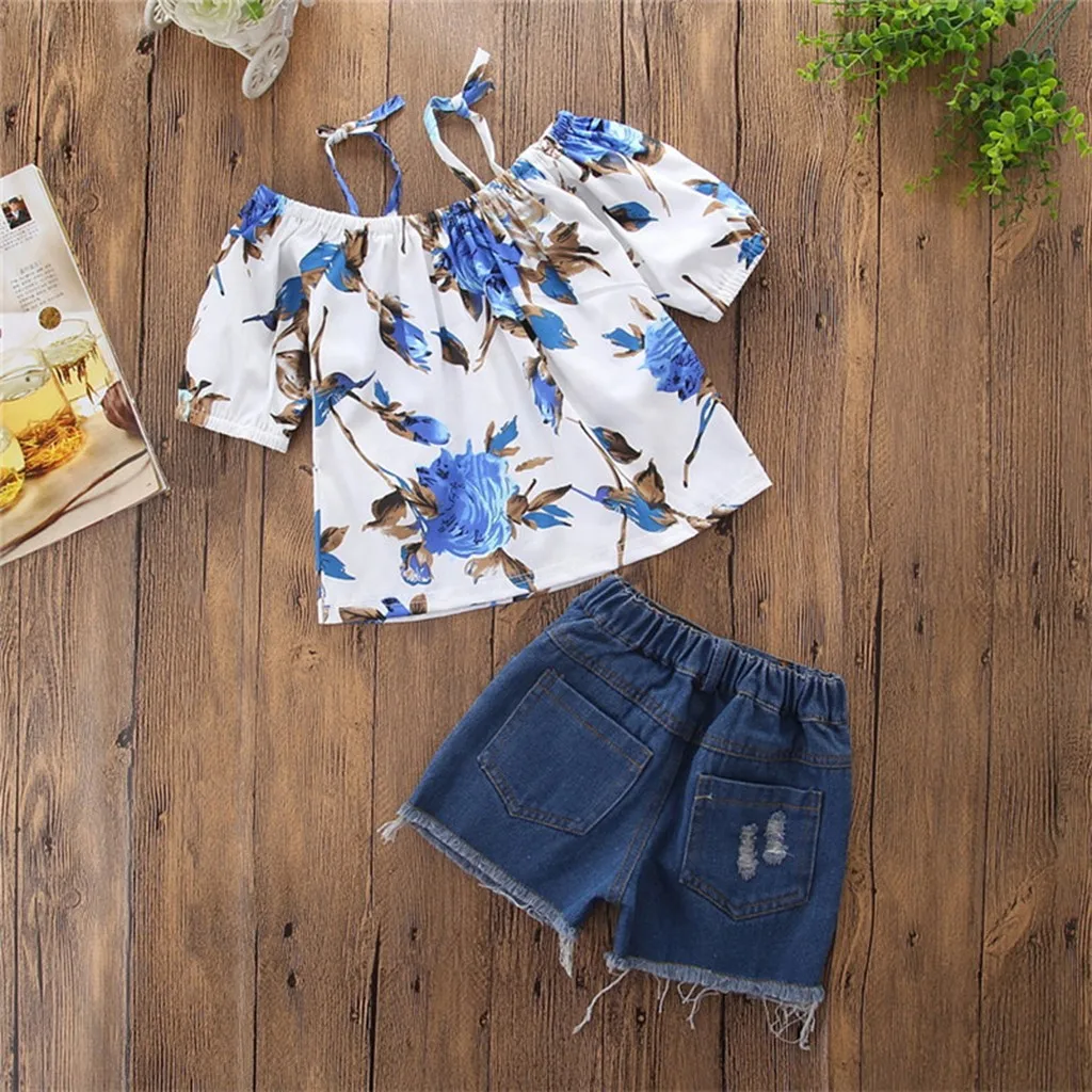 Limited Offer of CHAMSGEND High Quality Toddler Kids Girl Suspender Cotton blend Floral Print Tops+Jeans Shorts Pant