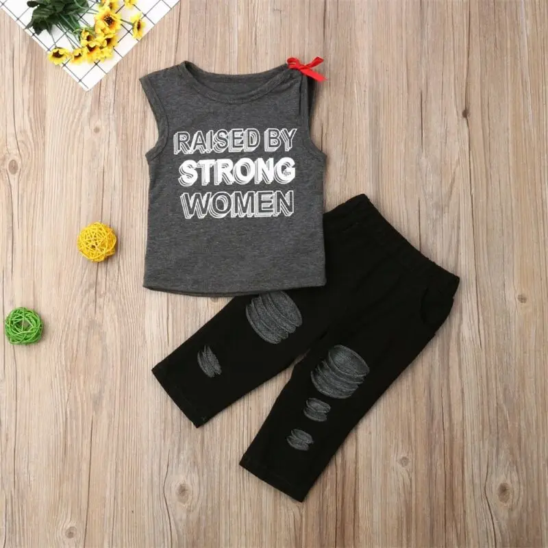 Cheap Chance of Fashion Toddler Kid Baby Girl Top T-shirt Pants Denim Jeans Leggings 2pcs Outfit