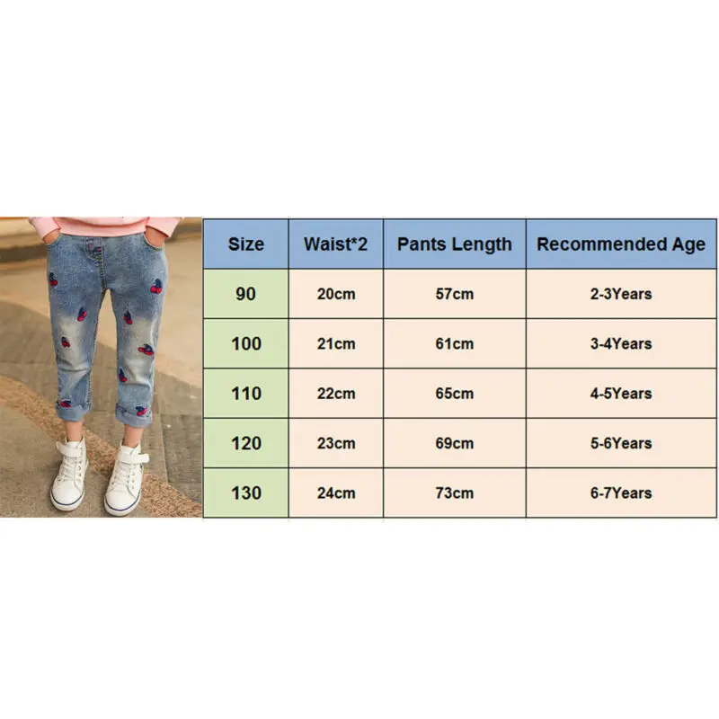Best Chance for Toddler Kid Baby Girls cherry embroidery Jeans Denim Pants Legging Trouser Outfits Children Clothes